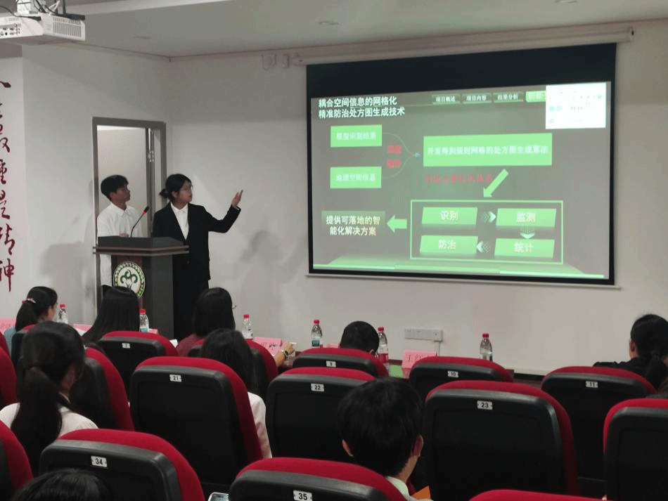 本次大赛共收到23份参赛作品,经过初赛选拔,最终评选出10支优秀队伍进入本次决赛。大赛开始,10组参赛选手代表依次上台,通过PPT讲解和展示,从国家政策、实验方法、方案设计、未来展望等方面对项目方案进行详细阐述。选手们别出心裁的设计和精彩纷呈的讲解,赢得阵阵掌声。答辩环节,评委老师从专业角度给予选手指正与点评,选手们也积极回答老师们的问题。