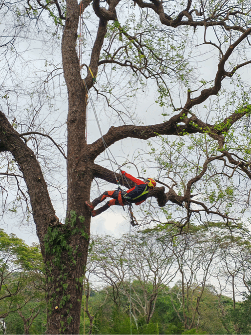 黄颂谊老师以及陈峥老师首先带领同学们在树艺师攀树的考核场地观摩攀树项目,由粤港澳树艺学会监事长廖国兴老师为同学们演示攀树的基础动作和注意事项,围绕“城市树艺技术”核心主题进行讲解,将广泛的专业经验和从业经历传授给大家,强化同学们对树艺师这个职业以及树艺技术的认知,夯实专业实践的根基。