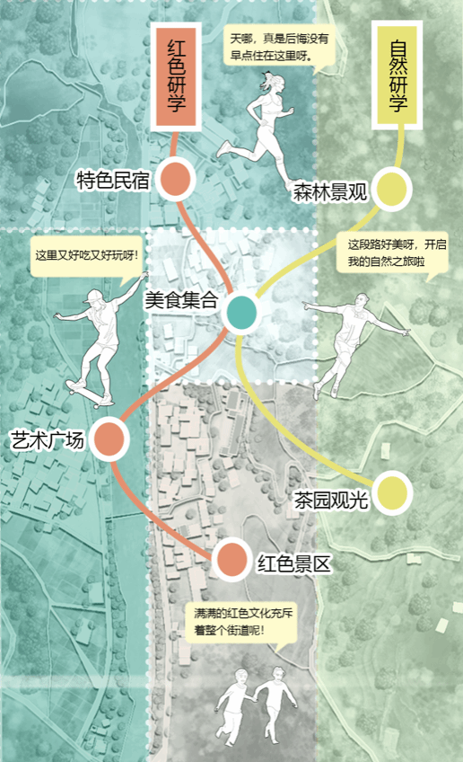 兴文旅、谋规划——团队以“醉美山水 多彩良田”为核心理念,深度走访调研包含南方人民银行纪念馆等红色文化旧址、独山王爷洞风景区等民俗历史资源、生态林等自然保护区及村庄现状,通过文旅游径整合良田乡红色历史资源与绿色自然景观,规划未来乡村新图景。